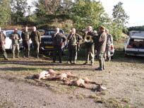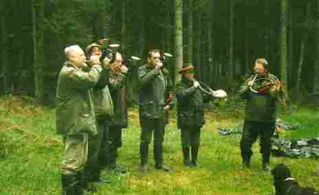 (hornblæsning + fremvisning af og forklaring om trofæer m.v.)