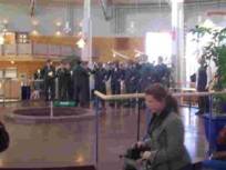 Gruppen, m. familier, lytter til de andre deltageres frembringelser