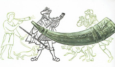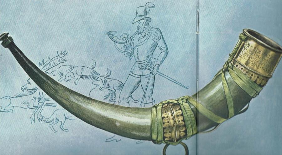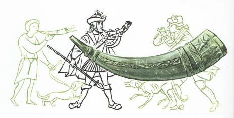 Da den merovingske Kong Guntchramn – i krønikerne ofte kaldet ”den Gode”, men med med legandarisk mangel på fordragelighed, – fik stjålet sit jagthorn, lod han omgående et antal uskyldige mennesker kaste i fængsel og beslaglagde deres gods, hvad der viser hvilken værdi, man tillagde dette instrument.