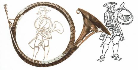Jo længere hornets rør var, jo højere blev lydeffekten, og da oksehornene og olifanterne i slutningen af middelalderen blev erstattet af metalhorn, corno di caccia, fik de den stærkt svungne form, som blev forbilledet for valdhornet og parforcehornet.