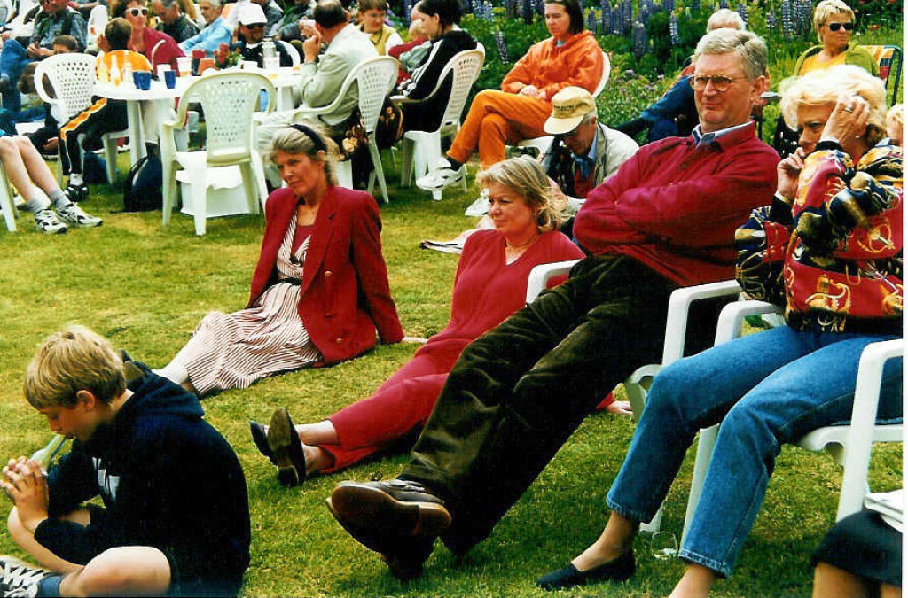 og se den smukke park, der jo normalt ikke er åben for offentligheden. - Nr. 2 & 3 : Publi- kum nød de smukke omgivelser, det gode vejr og ikke mindst den gode hornmusik. - Nr. 4: Ligesom sidste år havde Per Iversen komponeret en fanfare til det sted, hvor træffet holdtes – ”Lyngsbækgaard Godsfanfare” – som han efter uropførelsen her overrækker noderne til til Lyngsbækgaards ejerpar, Vivi og Per Henriksen.