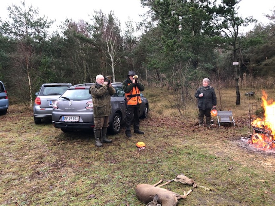 Selv om vi ikke har kunnet mødes til vores ellers så hyggelige øveaftener gennem hele sensommeren og efteråret, har vi heldigvis kunbnet blæse på jagterne i frisk luft og fri natur. Her er det Torben og Jørgen, der blæser ved paraden ved Elsegaarde Jagtforenings "Julejagt".
