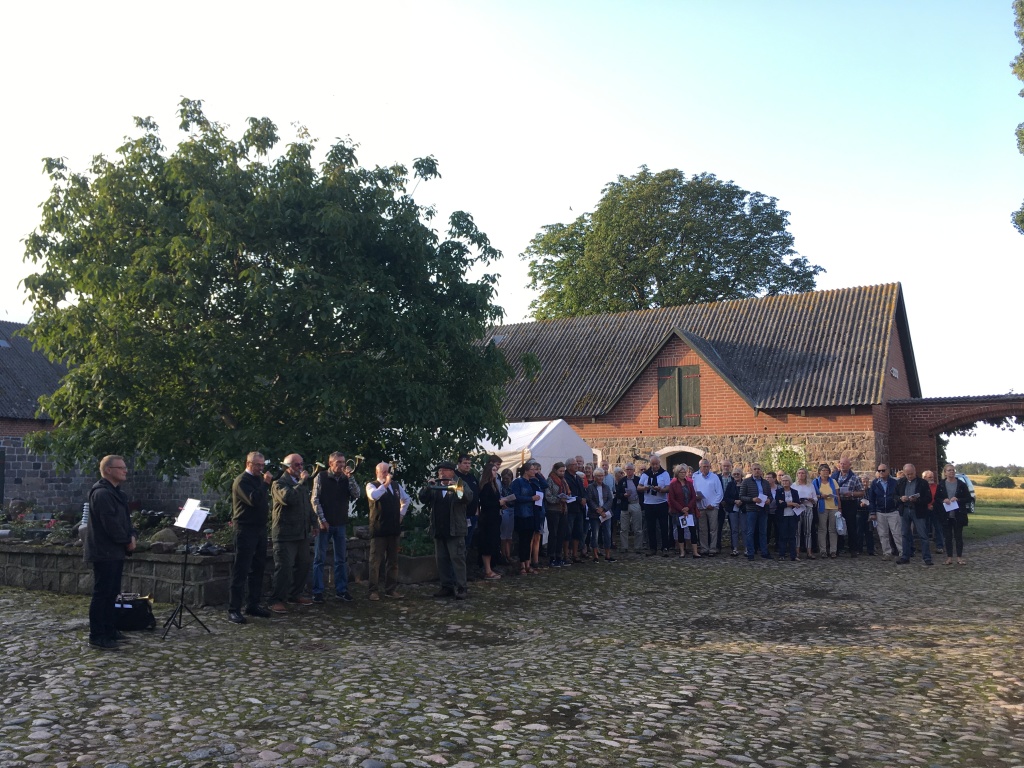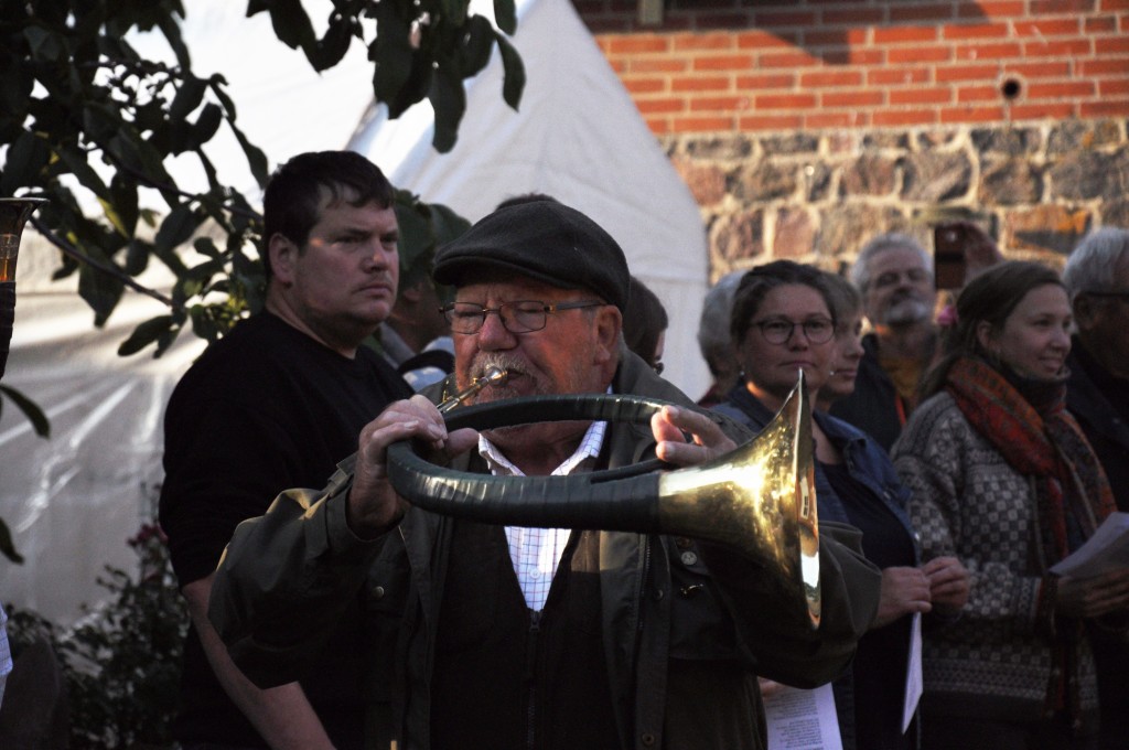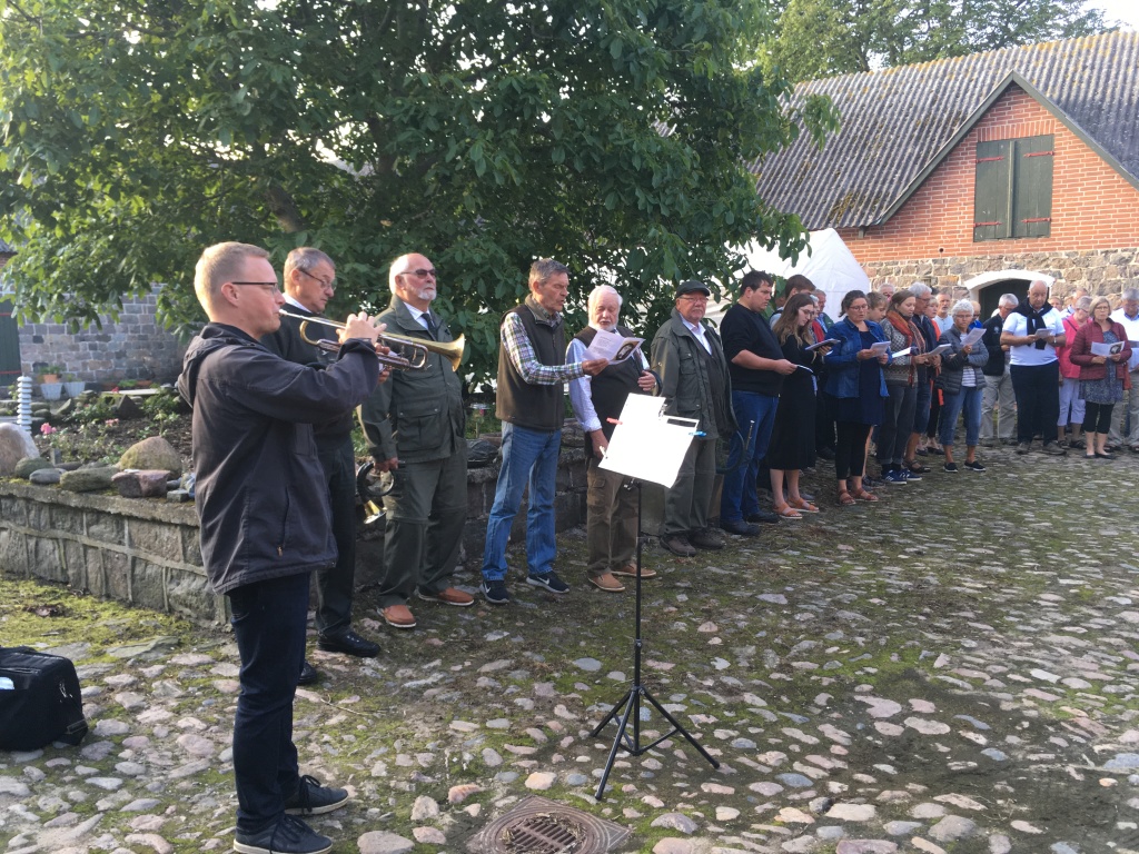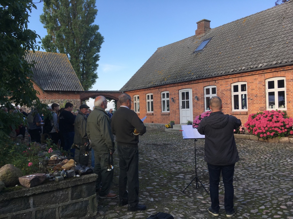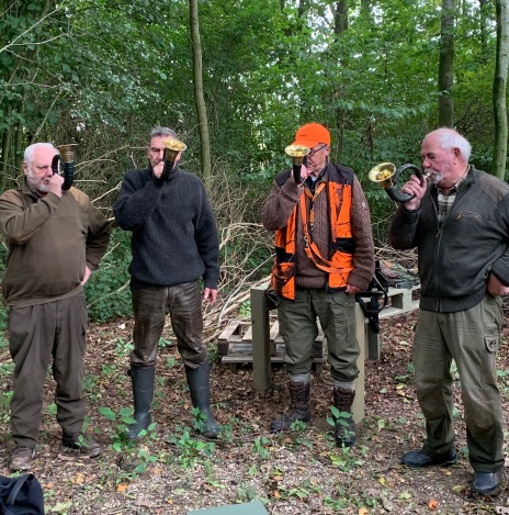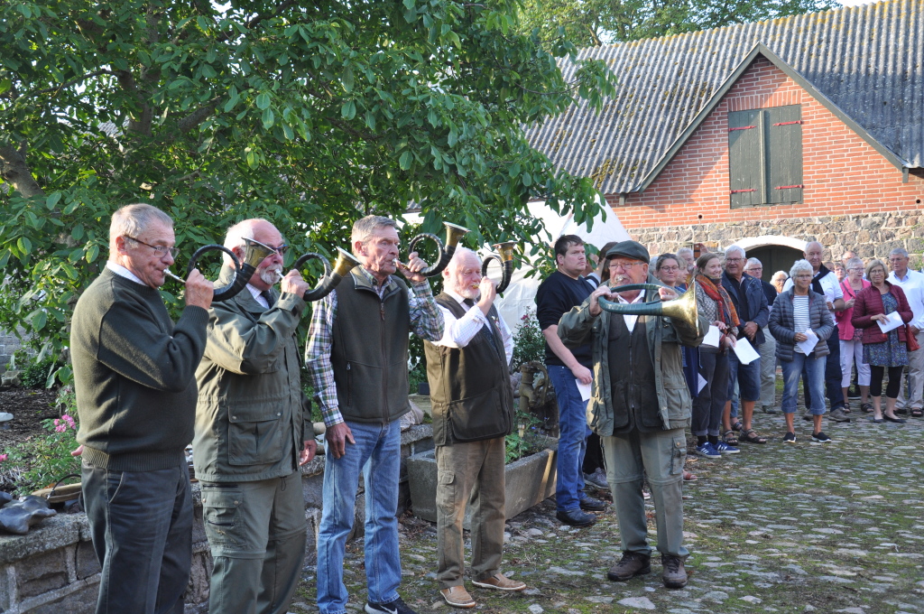 Vores "forkvinde" Lise og hendes gemal Christian kunne fejre guldbryllup, - og selvfølgelig var vi på pletten om morgenen for at vække dem med nogle jagthornstoner. Vi blæste "Samling", "Jægerhoret far Elverhøj", "Højt skal de leve", "Så gi'r de nok en lille én" og #De skal leve". Vore lærer, Christoffer, blæste trompet til "de obligatoriske sange".